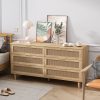 51.18″6-Drawers Rattan Storage Cabinet Rattan Drawer with White Drawer Slides,for Bedroom,Living Room,Natural