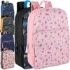 24 Pack of Bulk Wholesale 17 Inch Fun Printed Backpacks for Commute and Travel in Mixed Male & Female Whimsical Prints Pack