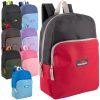 24 Pack of Bulk Wholesale Two Tone Color Backpacks for Travel and Commuting in Mixed Assortment Pack