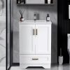 24″ Bathroom Vanity with Ceramic Undermount Sink – Freestanding 2-Door & 1-Drawer Storage Cabinet, White