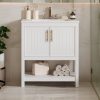 30″ Freestanding Single Bathroom Vanity with Ceramic Top and Bottom Open Shelf, White