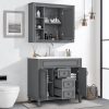 36″ Bathroom Vanity Set with Resin Sink and Wall Mounted Mirror Cabinet, Modern Freestanding Single Cabinet Combo with Storage Shelves & 2 Drawers & 2 Soft Closing Doors, Vintage Handles, Gray