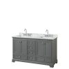 60 in. Double Bathroom Vanity, White Carrara Marble Countertop, Undermount Square Sink & No Mirror – Dark Gray