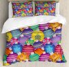 Ambesonne Outer Space Duvet Cover Set, Science Fiction, Calking, Army Green Pale Grey