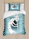Ambesonne Neutral Color Duvet Cover Set, Overlapped Rounds Art, Twin, Blue Grey and Pale Teal