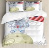 Ambesonne Panda Duvet Cover Set, Astronaut on Moon Cartoon, Calking, Red Navy White