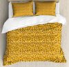 Ambesonne Yellow Brown Duvet Cover Set, Retro Style Hexagons, Calking, Cocoa Brown