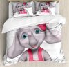 Animal Cartoon Duvet Cover Set, Cheerful Girl Smiling 3D Style Happy Print, Decorative 3 Piece Bedding Set with 2 Pillow Shams, Calking Size, Yellow Grey Pink, by Ambesonne