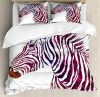 Animal Duvet Cover Set, Modern Ornamental Zebra Profile Silhouette Striped Savannah Theme Art, Decorative 3 Piece Bedding Set with 2 Pillow Shams, Calking Size, Purple Coral and Pink, by Ambesonne
