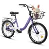 20 Inch Kids Bike for Boys Girls, 1 Speed Children Bicycle with Basket, Rear Seat, Chain Guard, Coaster Brake and V-Brake, Steel Frame Kids Bike for Ages 6-12 Years Old Birthday Gift, Purple