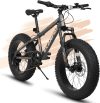 20 Inch Fat Tire Bike Adult 7 Speed Mountain Bike, Dual Disc Brakes, High Carbon Steel Frame, Front Suspension, Mountain Buggy, City Commuter City Bike, Fat Tire Bike Black