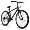 24 Inch Mountain Bike for 10+ Years Old, 21 Speeds Commuter Bike with V Brake and Steel Frame, Rigid Suspension MTB Bicycle for City Trail Beach Snow, Black-Red