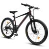 24 Inch Mountain Bike Dual Suspension, 21 Speeds Mountain Bicycle with Dual Disc Brake and Carbon Steel Frame, Beach Snow Commuter City Bike for Teen Gift, Black-Orange