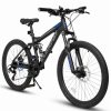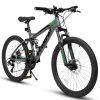 Aezusy Mountain Bike 24 Inch Wheels, 21-Speed Full Suspension Mens Womens Trail Commuter City Mountain Bike, Carbon Steel Frame Disc Brakes Bicycles