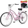 Ambifirner Women’s Beach Cruiser Bike, 26in City Cruiser Bikes High Carbon Steel V Brake 7 Speed Commuter Bike with Basket & Mirror