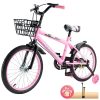 Ambifirner Girls Bike,20 Inch Kids Bike for 5-8 Years Old Children, Princess Style Kids Bicycle Adjustable Seat with Doll-Seat & Basket Pink