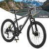 ARTUDATECH 24 26 27.5 Inch Mountain Bike, 24 Speeds with V/Disc Brakes High-Carbon Steel Frame Mens Womens Mountain Bike, Front Suspension MTB Bicycle for Adult & Teenagers