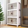 3-Tier White Plastic Storage Cabinet with Wheels – Collapsible Stackable Organizer for Closet Pantry Garage – Transparent Drawers Durable ABS+PP Space-Saving Horizontal Stripe Silent Wheels