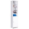 Alden Design 9″ Width Wooden over The Toilet Bathroom Storage Cabinets with Door, White