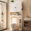 Apeaka Over The Toilet Storage Cabinet,Bathroom Storage Cabinet with Wooden Doors,Bathroom Organizer Over-The-Toilet Cabinet(White)