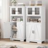 AOILE Farmhouse Bathroom Storage Cabinet with Glass Doors & Adjustable Shelves, Freestanding Kitchen Pantry Cabinet