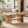 Bestco 42″ Farmhouse Coffee Table with Sliding Door Rustic Center Table Light Rustic Oak