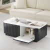 35.4″ x 23.6″ Modern Coffee Table, Two-tone Coffee Table with 2 Storage Drawers, Faux Marble and Walnut Wood Grain Finish, Rectangular Center Table Practical Cocktail Table for Living Room, White