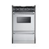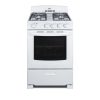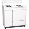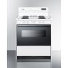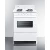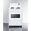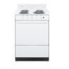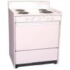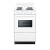30″ wide electric coil top range in white with black door, oven window, and high backguard