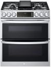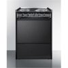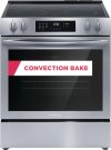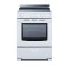 24″ wide smooth top electric range in slide-in style and white finish, with storage drawer and large oven window in black glass