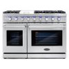 Akicon 48 Inch Freestanding Gas Range with 8 Sealed Burners Cooktop, 6.7 Cu.Ft. Dual Zone Capacity, Natural Gas/LP Convertible-BSGBGGA1