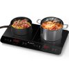 Aobosi Electric Double Induction Cooktop 1800W Portable Ultrathin with Sensor Touch,10 Temperature 9 Power Settings 4 Hour Timer, Over-heating Protection & Child Safety Lock for Kitchen Garden Office