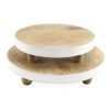 AuldHome Design Farmhouse Round Wooden Risers (Set of 2, White Trim), Rustic Decorative Risers for Display w/ Natural Mango Wood and Enamel Trim
