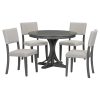 5 Pieces 42-58″ Extendable Round Dining Table Set with 16″ Removable Leaf for 4, Dining Table with 4 Upholstered Dining Chairs, Farmhouse Wood Table Set for Dining Room
