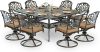 9-Piece Patio Cast Aluminum Dining Set, Outdoor Dining Furniture Set for 8 Person, Includes 64″ Square Table and 8 Swivel Rocker Chairs with Umbrella Hole for Patio Deck Garden, Tan