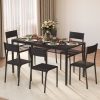 Aiho Compact 5-Piece Modern Dining Set for 4, Faux Marble Table & Vegan Leather Chairs for Dining room, Black