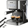 Auseo 20 Bar Espresso Machines, Espresso Coffee Maker with Milk Frother Steam Wand, Ground Coffee & Capsules, Black and Stainless Finish, Espresso/Cappuccino/Latte/Mocha for Home