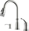 BWE Kitchen Faucet with Pull Out Sprayer 3 Spray Modes Brushed Nickel Single Handle Singe Lever High Arc Kitchen Sink Faucet with Deck Plate Commercial Bar Farmhouse Pull Down Sprayer