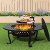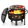 Alpha Joy 30″ 2 in 1 Wood Burning Fire Pit for Camping Picnic Bonfire with with Cover, Poker, BBQ Net – Black