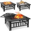 32” Multipurpose Fire Pit, Outdoor Fire Pit Table for Net Lid/Poker, Square Bronze Firepit Stove for Outside Camping Backyard Bonfire