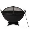 Ash & Ember 32″ Hemisphere Fire Pit with Screen and Poker, Cast Iron High-Temperature Black Paint Fire Bowl, Wood Burning Backyard Fireplace, Portable Outdoor Firepit