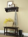 Alaterre Shaker Cottage Bench/Coat Hooks with Tray, Chocolate