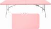 4 FT Portable Plastic Folding Table, Heavy Duty Fold-in-Half Picnic Dining Table for Camp Party, Kitchen, Indoor Outdoo, Pink