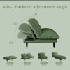 75″ 4-in-1 Corduroy Futon Couch – Convertible to Lounger, Tatami & 2 Chairs, 3-Angle Adjustable Backrest, Solid Wood Frame, 300 LBS Capacity,Green