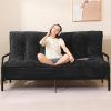 Black Futon Sofa Bed,Modern Faux Suede Convertible Sofa Bed with 3 Adjustable Backrest Angles,Loveseat Sleeper Couch for Living Room Apartment Furniture