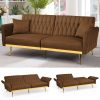 ACMEASE 70” Velvet Futon Sofa Bed with Adjustable Armrests and 2 Pillows, Convertible Futon Couch, Brown