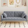 71 Inches Velvet Futon Sofa Bed with 2 Pillows,Modern Convertible Futon Couch with 3 Adjustable Backrest Angles and Gold Metal Feet,Suitable for Apartment,Living Room,Small Space,Gray