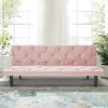 Aukfa Velvet Futon Convertible Sofa for Home Office, Tufted Back, Space Save, Pink