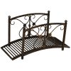 5 FT Brown Wooden Garden Bridge with Arc Frame and Chain Railings for Outdoor SpacesSupports 400 lbsfor Backyard Decor
