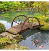 (HRR LTD)–3.3ft Wooden Garden Bridge Footbridge With Half-Wheel Style Railings & Solid Fir Construction, Stained Wood-LK LTD–(sd45r4e8 )