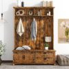 Coat Rack Farmhouse 4-in-1 Hall Tree with Wood Grain Bench, Mudroom Versatile Coat Rack with 2 Large Drawer, Entrance Organizer for Hallway, Living Room, Black, 55.9″W (Same as N721P205660),Hall Tre
